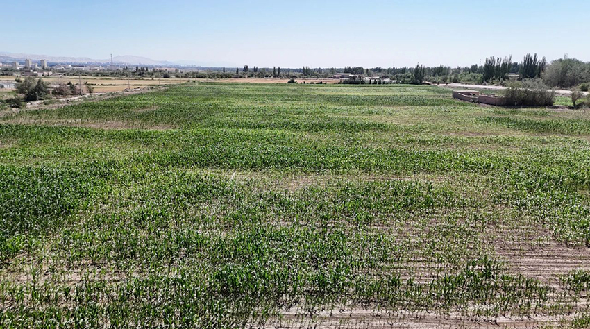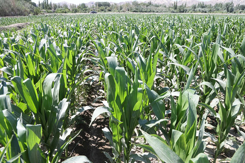 阿图什市部分耕地曾因盐碱化严重面临抛荒风险。昆山援疆工作组了解情况后,积极引入昆山科腾生物科技有限公司的耐盐碱玉米品种及配套技术。经过两个月的科学管理,300亩盐碱地上的玉米出苗率正常,苗情整体良好。通过土地改良与科学选种相结合,工作组成功在中重度盐碱地上开辟出这片具有示范意义的“实验田”。
