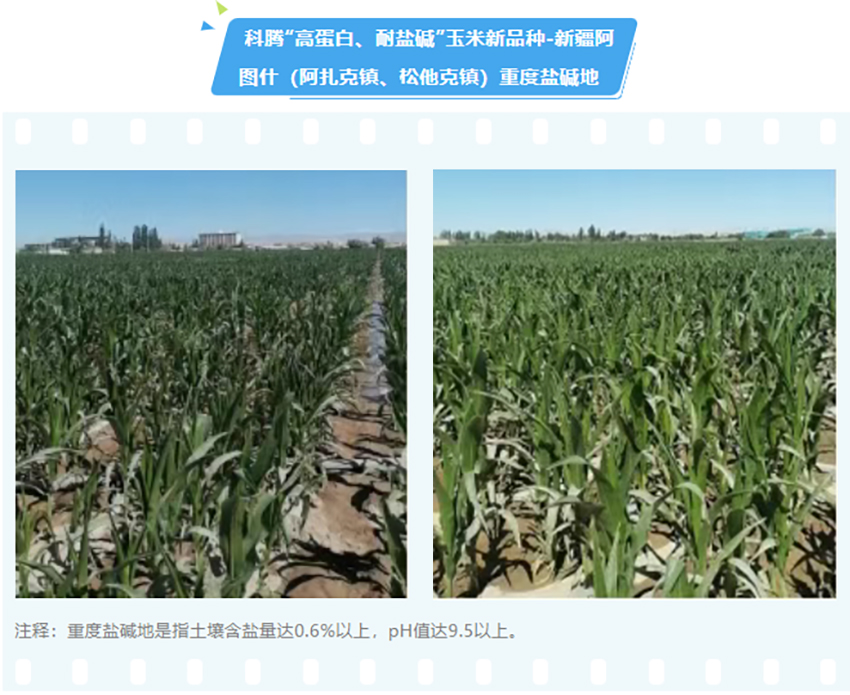 科腾耐盐碱玉米更是突破土地限制,我国有5亿亩可开发利用盐碱地,过去因土地盐碱化难以种植普通作物而闲置,如今科腾耐盐碱玉米能够在这些“不毛之地”扎根生长。将高蛋白与耐盐碱特性结合的玉米品种,能在盐碱地上产出高蛋白玉米,既增加粮食产量,又为饲料行业提供优质原料,从粮食供应与饲料保障两方面,稳稳筑牢国家粮食安全防线。